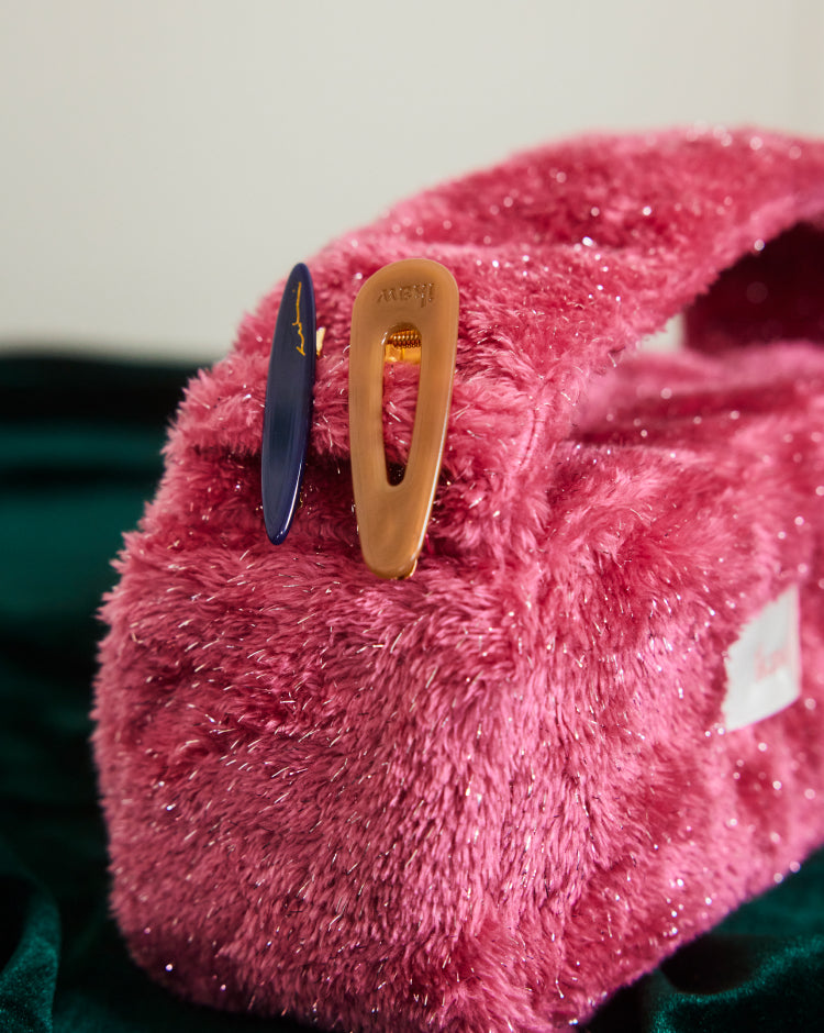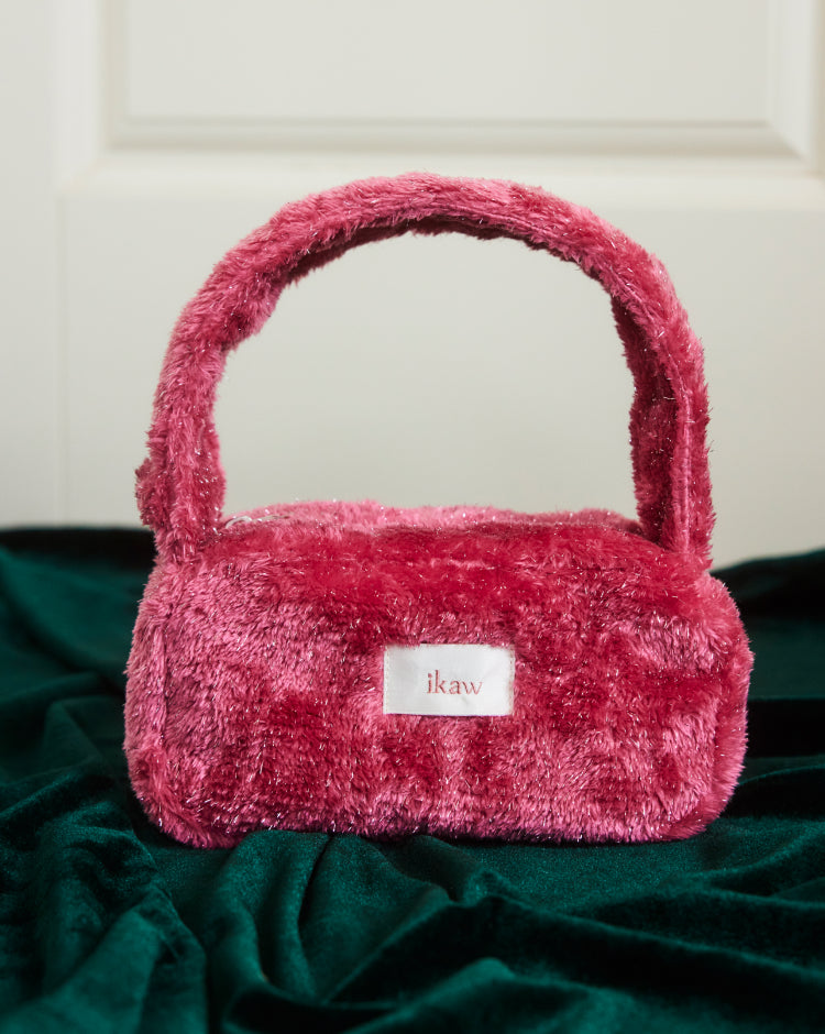 深みのあるくすみピンクと、ふわりとしたファーの質感が、冬の空気の中で鮮やかに映えるホリデーカラー。暗くなりがちな冬のスタイリングにも自然に馴染み持つだけで心が高まるときめきを。毎日の外出を少し特別にしてくれる、冬のアイコンアイテムです。