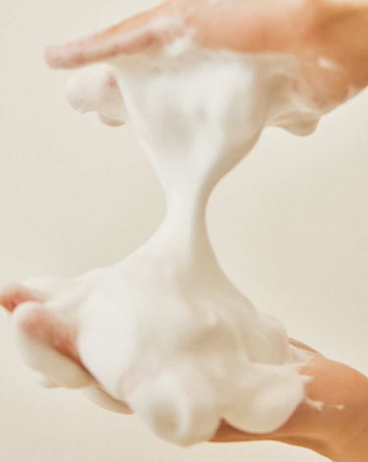 ── もちもちの泡、ふんわり肌に手のひらいっぱいに広がるシルキーでもちもちとした泡が、やさしく肌にフィット。オイル配合とは思えないほど軽やかで、摩擦を抑えながら汚れをすっきりとオフ。洗い流した瞬間、泡はさらりと溶け、仕上がりはふんわり。うるおいを守りながら、肌の呼吸まで整うような心地よさを。